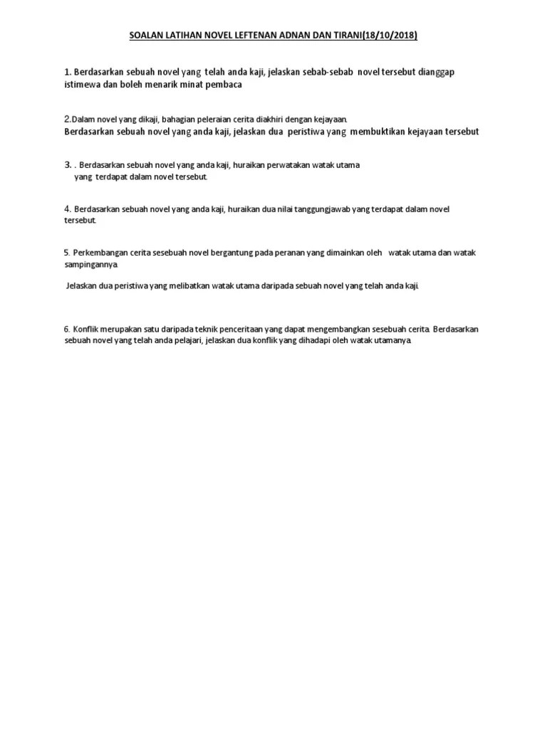 You can also bookmark this page with the url . Novel yang saya kaji di tingkatan 4 ialah novel leftenan adnan wira bangsa karya abdul latip bin . Menjadikan watak utama dalam novel ini menarik perhatian pembaca. Peristiwa menarik novel tirani dan leftenan adnan / kertas 2 soalan skema novel percubaan spm 2019 se malaysia pages 101 150 flip pdf download fliphtml5. Terdapat beberapa sebab saya menganggap novel tersebut istimewa dan boleh menarik minat pembaca.